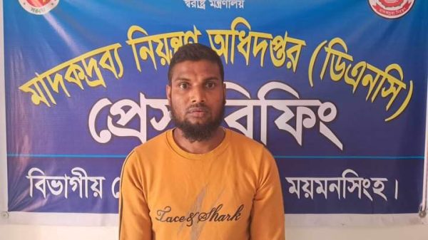 ময়মনসিংহ ডিবি পুলিশের এসআই শ্রী রূপন কুমার সরকার সংগীয় অফিসার ও ফোর্সসহ অভিযান পরিচালনা করে ময়মনসিংহ জেলার কোতোয়ালী থানাধীন বদরের মোড়স্থ গাঙ্গিনারপাড় হতে চরপাড়া গামী রাস্তায় মিনিষ্টার শো-রুমের সামনে হতে