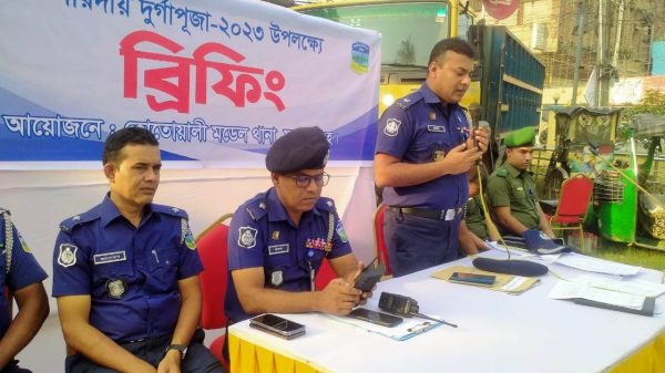 দুর্গাপূজা উপলক্ষে ডিউটি পালনকারীদের সাথে আইন-শৃঙ্খলা সংক্রান্ত মতবিনিময় সভা অনুষ্ঠিত