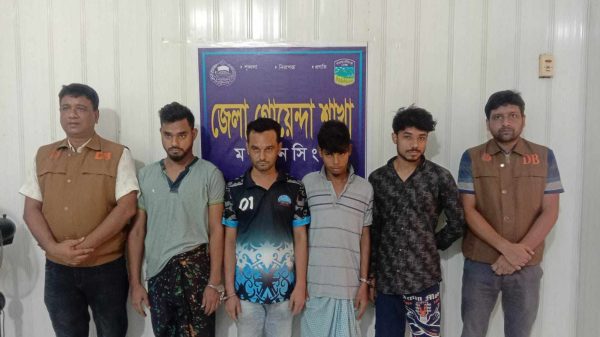 ময়মনসিংহ জেলা গোয়েন্দা সংস্থা ডিবি’র অভিযানে ১১০ পিস ইয়াবাসহ ৪ জনকে গ্রেফতার করেছে। পুলিশ জানায়, এসআই(নিঃ) রূপন কুমার সরকার সংগীয় অফিসার ও ফোর্সসহ অভিযান পরিচালনা করে ময়মনসিংহ জেলার কোতোয়ালী থানাধীন