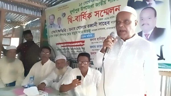 নেত্রকোনার দুর্গাপুরে জাতীয় পার্টির দ্বি-বার্ষিক সম্মেলন অনুষ্ঠিত হয়েছে। শুক্রবার বিকালে উপজেলার দলীয় কার্যালয়ের সামনে এ দ্বি-বার্ষিক সম্মেলন অনুষ্ঠিত হয়। দূর্গাপুর উপজেলা জাতীয় পার্টি কমিটির আহবায়ক ফেরদৌস আলম খান এর সভাপতিত্বে