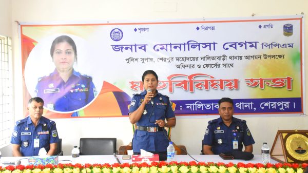 মোনালিসা বেগম পিপিএম-সেবা নবাগত পুলিশ সুপার, শেরপুর মহোদয় আকস্মিকভাবে নালিতাবাড়ী থানার বিভিন্ন কার্যক্রম সরজমিনে পরিদর্শন করেছেন। পরিদর্শন উপলক্ষে নালিতাবাড়ী থানায় উপস্থিত হলে থানা পুলিশের পক্ষে থেকে নবাগত পুলিশ সুপার, শেরপুরকে