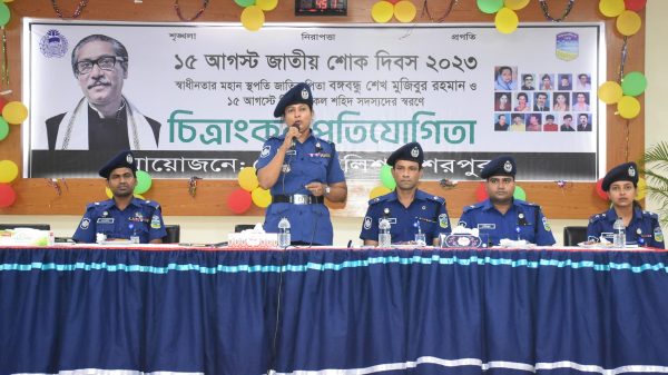 শেরপুর জেলা পুলিশ উদ্যোগে স্বাধীনতার মহান স্থপতি বাঙ্গালি জাতির পিতা বঙ্গবন্ধু শেখ মুজিবুর রহমান ও ১৫ আগস্টে নিহত সকল শহীদদের স্মরণে চিত্রাংকন প্রতিযোগিতা অনুষ্ঠিত হয়েছে। সোমবার (১৪ আগস্ট) পুলিশ লাইনস্