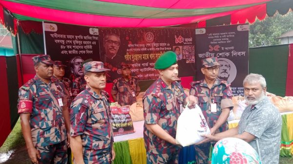 জাতীয় শোক দিবস উপলক্ষে বিজিবির কর্মসূচী পালন এবং দেশব্যাপী এর কর্মসূচির অংশ হিসেবে দুঃস্থদের মাঝে খাদ্যসামগ্রী বিতরণ ও বিনামূল্যে চিকিৎসা সেবা প্রদান করেছে ৩১ বিজিবি। স্বাধীনতার মহান স্থপতি সর্বকালের সর্বশ্রেষ্ঠ