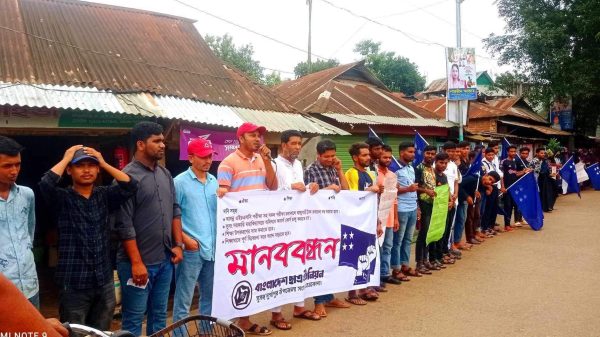 নেত্রকোনার দুর্গাপুরে এইচএসসি পরীক্ষা চলাকালীন সময়ে ট্রাক চলাচল বন্ধের দাবি সহ বিভিন্ন দাবিতে মানববন্ধন করেছে বাংলাদেশ ছাত্র ইউনিয়ন দুর্গাপুর উপজেলা সংসদ। সোমবার দুপুরে ঘন্টাব্যাপী পৌর শহরের এম কে সি এম