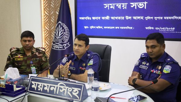 ময়মনসিংহ পুলিশ সুপার এর সভাপতিত্বে যানজট নিরসন ও ট্রাফিক ব্যবস্থাপনা সংক্রান্তে সমন্বয় সভা আজ ২৮মেবুধবার বিকাল বিকাল সাড়ে ৩ টায় ঘটিকায় অনুষ্ঠিত হয়। উক্ত সভায় বাংলাদেশ সেনাবাহিনী, সিটি কর্পোরেশন, পরিবহণ