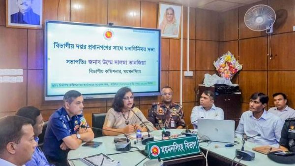 ময়মনসিংহের নতুন বিভাগীয় কমিশনার উম্মে সালমা তানজিয়ার সাথে বিভাগীয় দপ্তর প্রধানগণের পরিচিতি ও মতবিনিময় সভা অনুষ্ঠিত হয়েছে। ময়মনসিংহ বিভাগীয় কমিশনার কার্যালয়ের সম্মেলন কক্ষে সোমবার এ মতবিনিময় সভা হয়। সভায় নবযোগদানকৃত