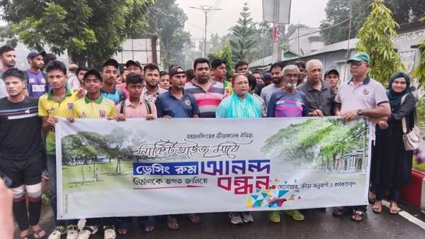 য়মনসিংহে ঐতিহাসিক সার্কিট হাউজ মাঠে ড্রেসিং রুম নির্মাণকে স্বাগত জানিয়ে আনন্দ বন্ধন