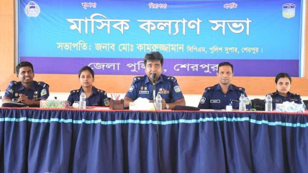 মোঃ কামরুজ্জামান বিপিএম, পুলিশ সুপার, শেরপুর মহোদয়ের সভাপতিত্বে পুলিশ লাইন্স মাল্টিপারপাস শেডে জেলা পুলিশের আয়োজনে জুন/২০২৩ খ্রিঃ মাসের কল্যাণ সভা অনুষ্ঠিত হয়েছে। কল্যাণ সভার শুরুতে জেলার সকল পুলিশ সদস্যদের বিবিধ