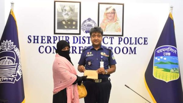 কর্তব্যরত অবস্থায় জীবন উৎসর্গকারী পুলিশ সদস্যের পরিবারের অনুকূলে ইন্সপেক্টর জেনারেল অব পুলিশ, বাংলাদেশ মহোদয় কর্তৃক প্রদত্ত নগদ অর্থ প্রদান করেন পুলিশ সুপার, শেরপুর পুলিশ সুপারের কার্যালয়, শেরপুর এর সম্মেলন কক্ষে