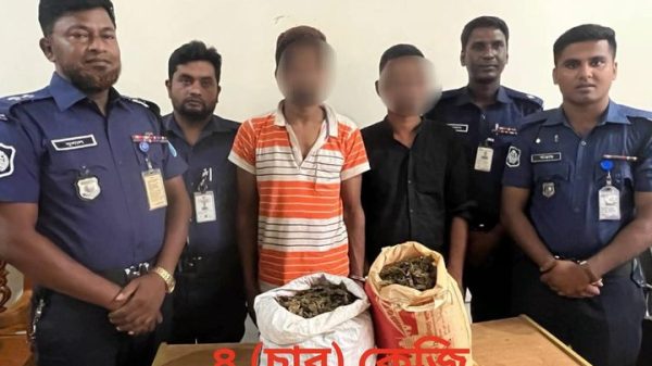 গত ১৩ মে দুপুর ১৩.৪৫ ঘটিকায় ০৪ (চার) কেজি গাঁজাসহ কটিয়াদী মডেল থানাধীন কটিয়াদী বাসস্ট্যান্ডে অভিযান পরিচালনা করে মো: শফিকুল ইসলাম (৩৫) রবিন আহম্মেদ (৩২)জামালপুরদ্বয়কে কটিয়াদী থানা পুলিশ গ্রেফতার করেন।