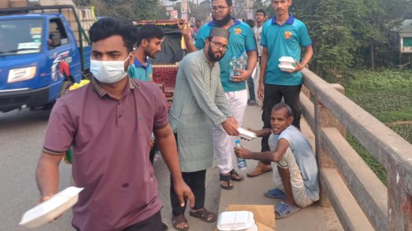 ঘড়ির কাঁটায় তখন বিকেল সাড়ে পাঁচটা। ময়মনসিংহের ঈশ্বরগঞ্জ পৌর শহরে ময়মনসিংহ-কিশোরগঞ্জ আঞ্চলিক সড়কের পাশে ভাসমান, দরিদ্র ও ছিন্নমূল মানুষের মধ্যে ইফতারি বিতরণ করেছে সামাজিক যোগাযোগ মাধ্যম ভিত্তিক স্বেচ্ছাসেবী সংগঠন’জনতার ঈশ্বরগঞ্জ’।