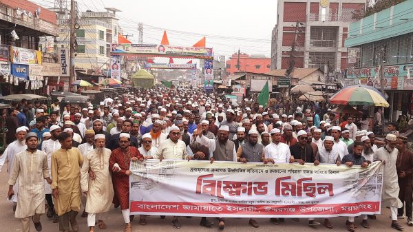 ময়মনসিংহের ঈশ্বরগঞ্জে দ্রব্যমূল্যের উর্ধ্বগতি ও মাহে রমাজানের পবিত্রতা রক্ষার দাবীতে জামায়াতে ইসলামী বিক্ষোভ মিছিল ও প্রতিবাদ সভাবেশ অনুষ্ঠিত হয়েছে। শুক্রবার জুমার নামাজের পর উপজেলা জামায়াতে ইসমালীর আমীর অধ্যক্ষ মাওলানা