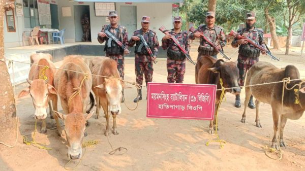 ময়মনসিংহ ব্যাটালিয়ন ৩৯ বিজিবি’র আওতাধীন শেরপুরের ঝিনাইগাতী ও নালিতাবাড়ীর হলদীগ্রাম, তাওয়াকুচা, রামচন্দ্রকুড়া ও হাতিপাগাড় বিওপি এবং ময়মনসিংহের হালুয়াঘাটের বান্দরকাটা বিওপি’র অভিযানে ভারতীয় মদ, গরু, চিনি, সাবান, সানগ্লাস আটক করা হয়েছে।