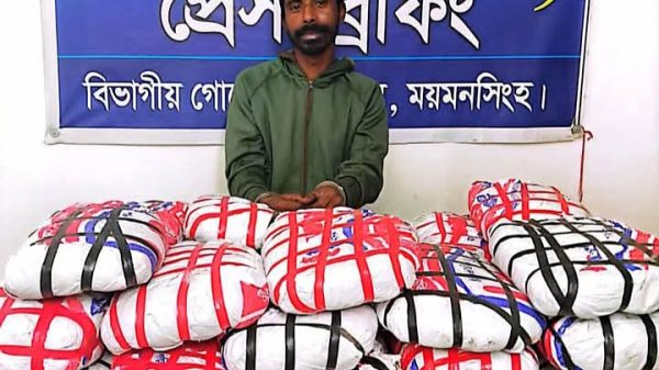 ১ মণ গাঁজা ও ০১ টি নোহা গাড়ীসহ একজন মাদক ব্যবসায়ী গ্রেফতার করেছে ময়মনসিংহ মাদক দ্রব্য নিয়ন্ত্রন অধিদপ্তরের গোয়েন্দা সংস্থা। অদ্য ২৮ জানুয়ারি মাদকদ্রব্য নিয়ন্ত্রণ অধিদপ্তর, বিভাগীয় গোয়েন্দা কার্যালয়, ময়মনসিংহ