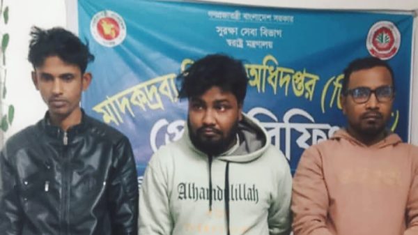 ময়মনসিংহ মাদকদ্রব্য নিয়ন্ত্রণ অধিদপ্তর বিভাগীয় গোয়েন্দা কার্যালয় ময়মনসিংহ কর্তৃক মাদকবিরোধী অভিযান পরিচালনা করে ৩ জন চিহ্নিত মাদক ব্যবসায়ীকে গ্রেফতার করেন। গ্রেপ্তারকৃতরা হলেন সুমন মজুমদার (৩৫), শিশির মজুমদার (২৫)। তারা বর্তমানে